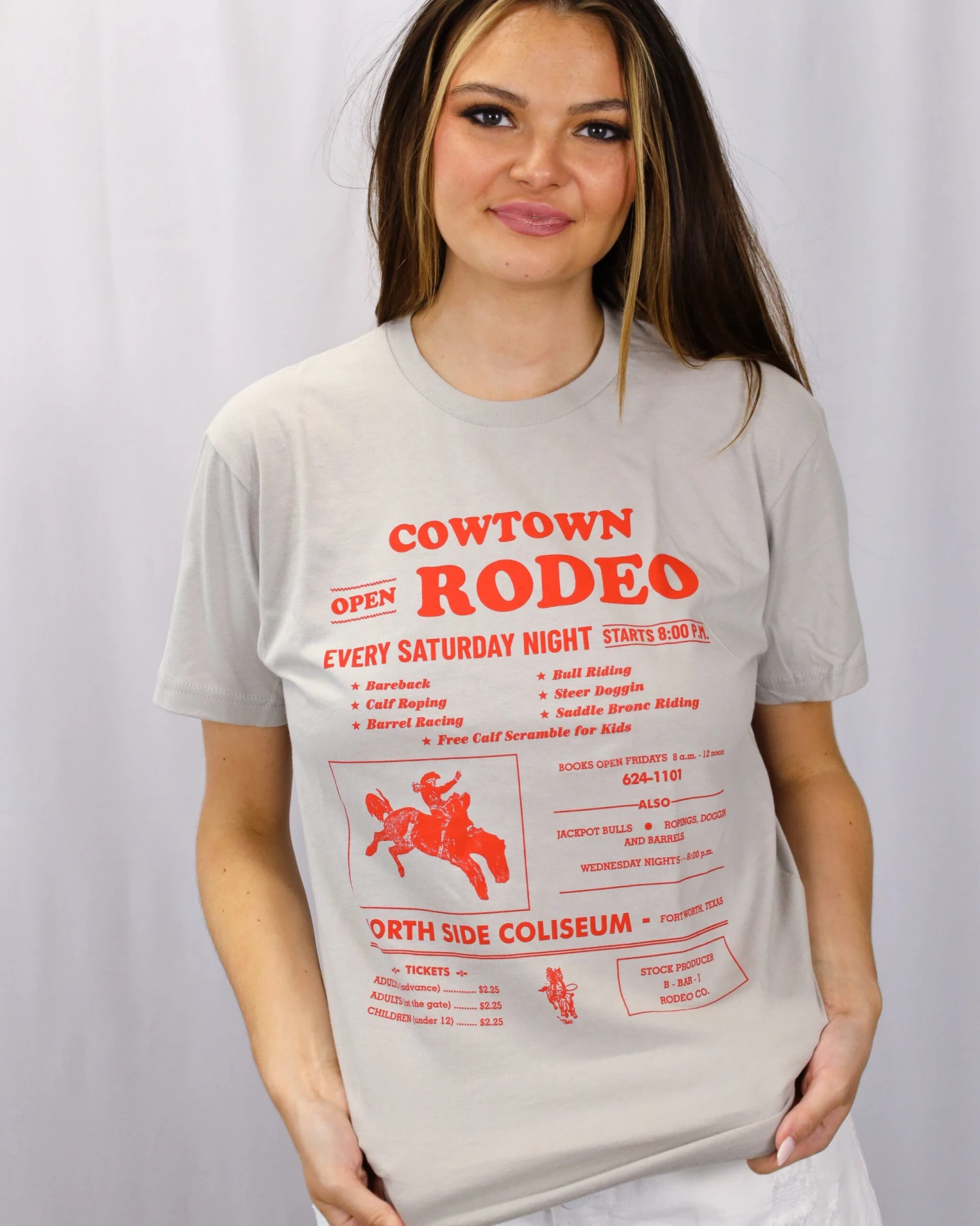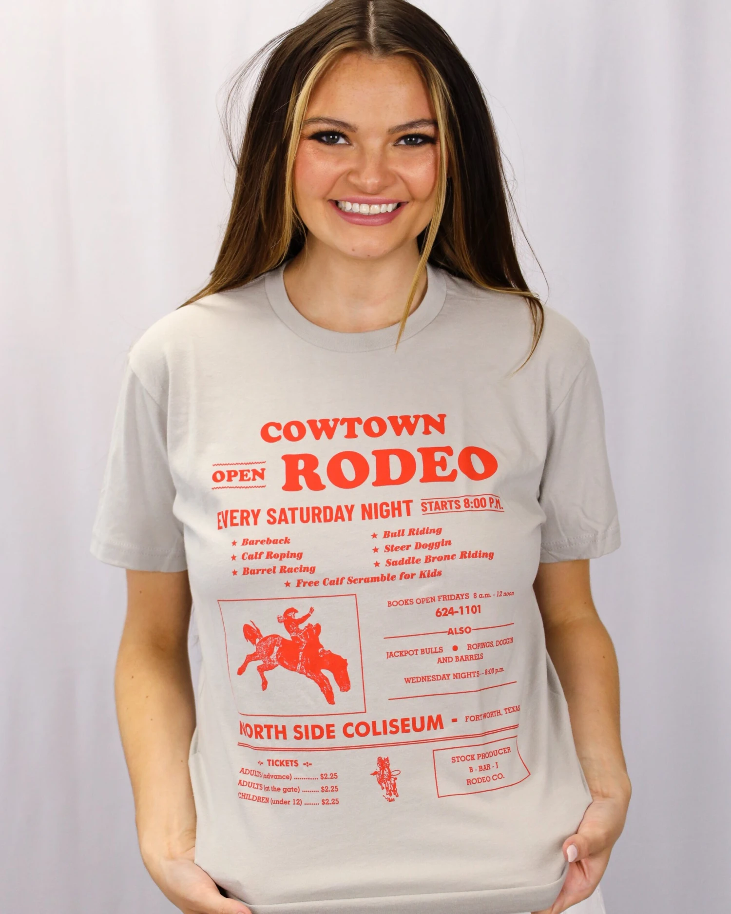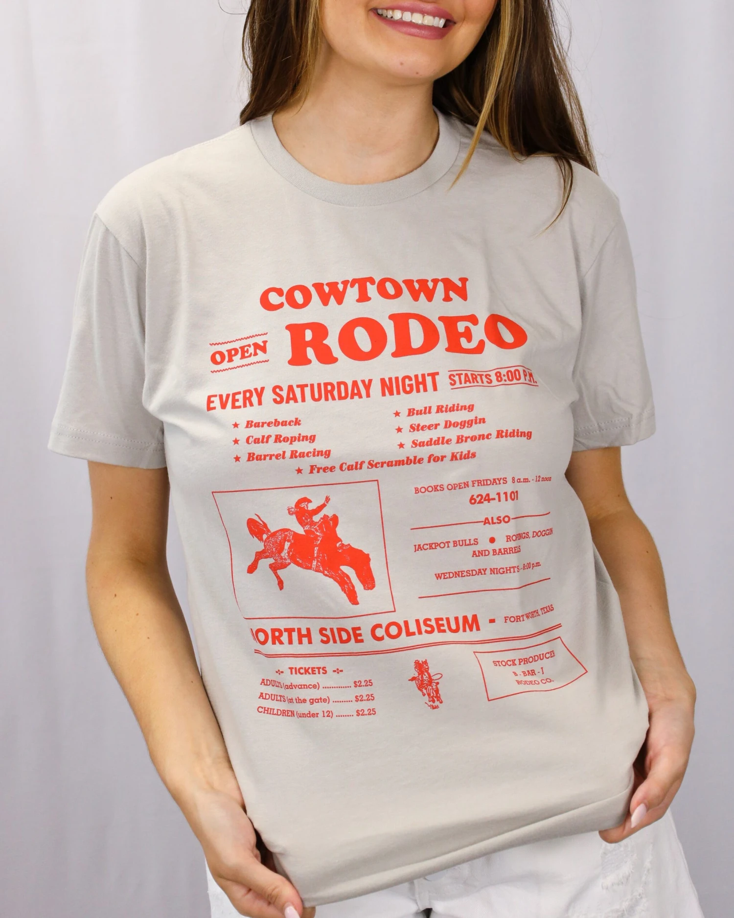 This adorable unisex t-shirt represents a Fort Worth Saturday night tradition: the Cowtown Rodeo at the North Side Coliseum, just a couple of buildings down from the Maverick! This extra soft t-shirt is the perfect Fort Worth relic.