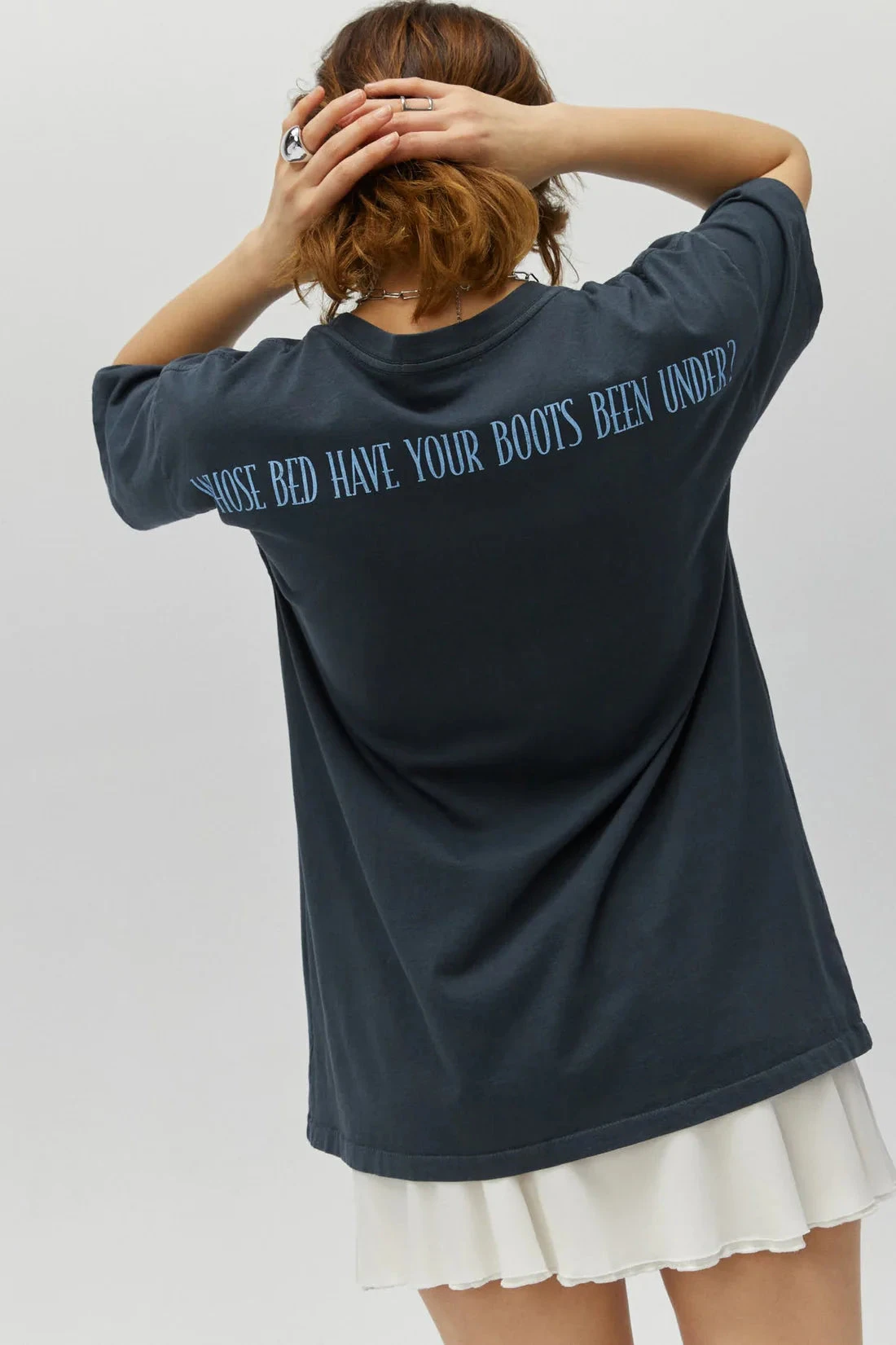 Shania Twain fans, this is no time to stay quiet. A top selling graphic from one of the most demanded artists on our roster now reissued exclusively on a merch tee. Featuring a portrait of the Queen of Country Pop stamped with the name of Shania’s first hit on country radio that rocketed into heavy rotation as her albums repeatedly sold and sold – “Whose Bed Have Your Boots Been Under?”