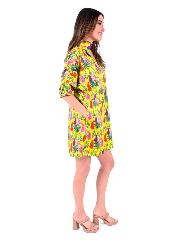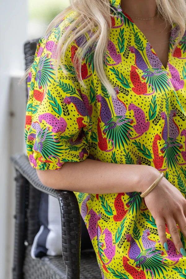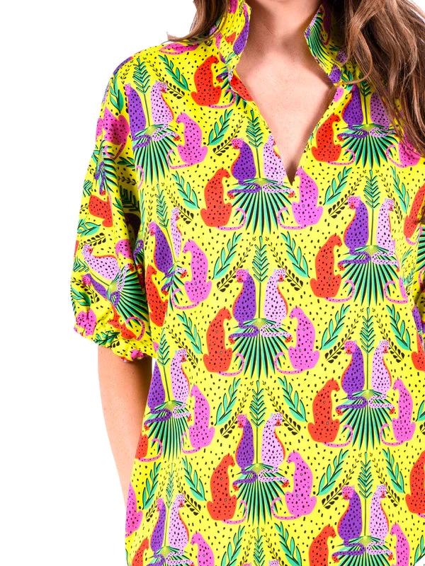 Our signature Poppy Dress in Peekaboo Cheetah is perfect for casual summer days and dressed up evenings. Loose fitting with an optional stand up collar and knee length hem. Dress up with a heel or go casual with a sneaker, the Poppy Dress is versatile for every style!