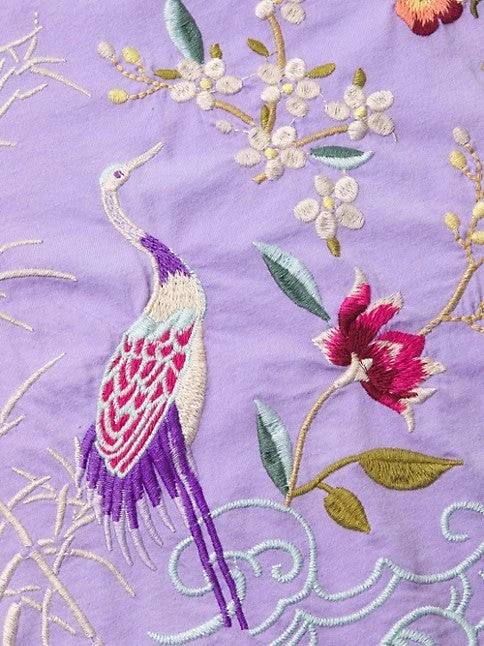 Johnny Was’ Osaka T-shirt features a relaxed silhouette with short dolman sleeves. Raw-edge seams and intricate floral embroidery define the look.