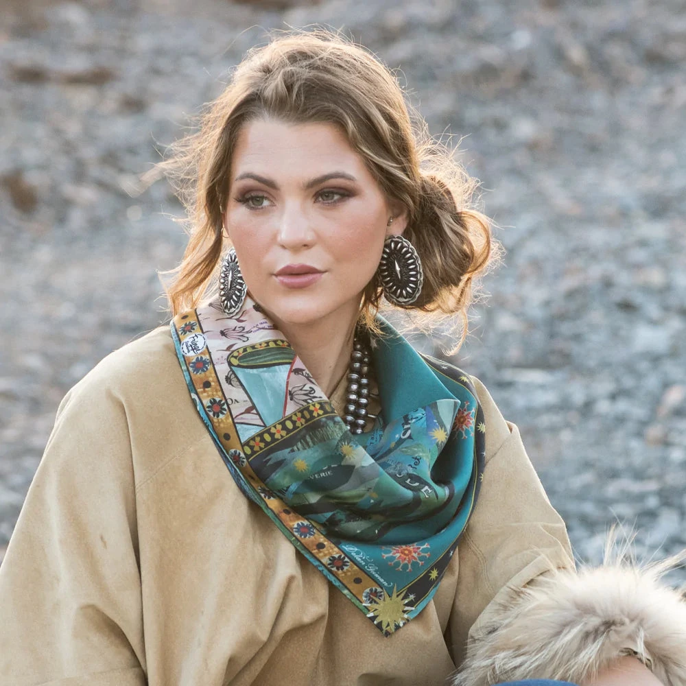 We are so excited to have nationally recognized mixed media artist, Dolan Geiman, showcasing his designs in this year’s Fringe collection. The Lady Of Guadalupe is one of five original works from Dolan in this year’s lineup.  All the pieces in this scarf tell a story, have fun zooming in and finding treasures throughout this beautiful silk scarf.