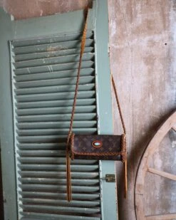 This bag also includes a detachable crossbody strap. The strap is hand braided and measures 48” from snap to snap.