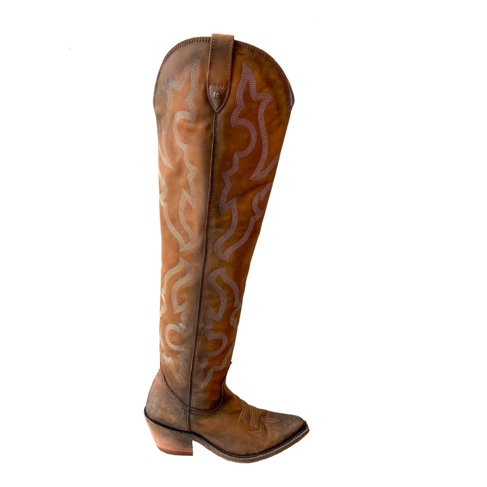 Allyssa by Liberty Black Boots is so smokin’ hot! She is 22 inches of beautiful distressed brown suede leather, featuring a fun stitch pattern and interior half zip detail, finished with a super chic round pointed toe. If you’re looking for a sassy country western vibe, the Allyssa Boots in Brown are for you cowgirl!