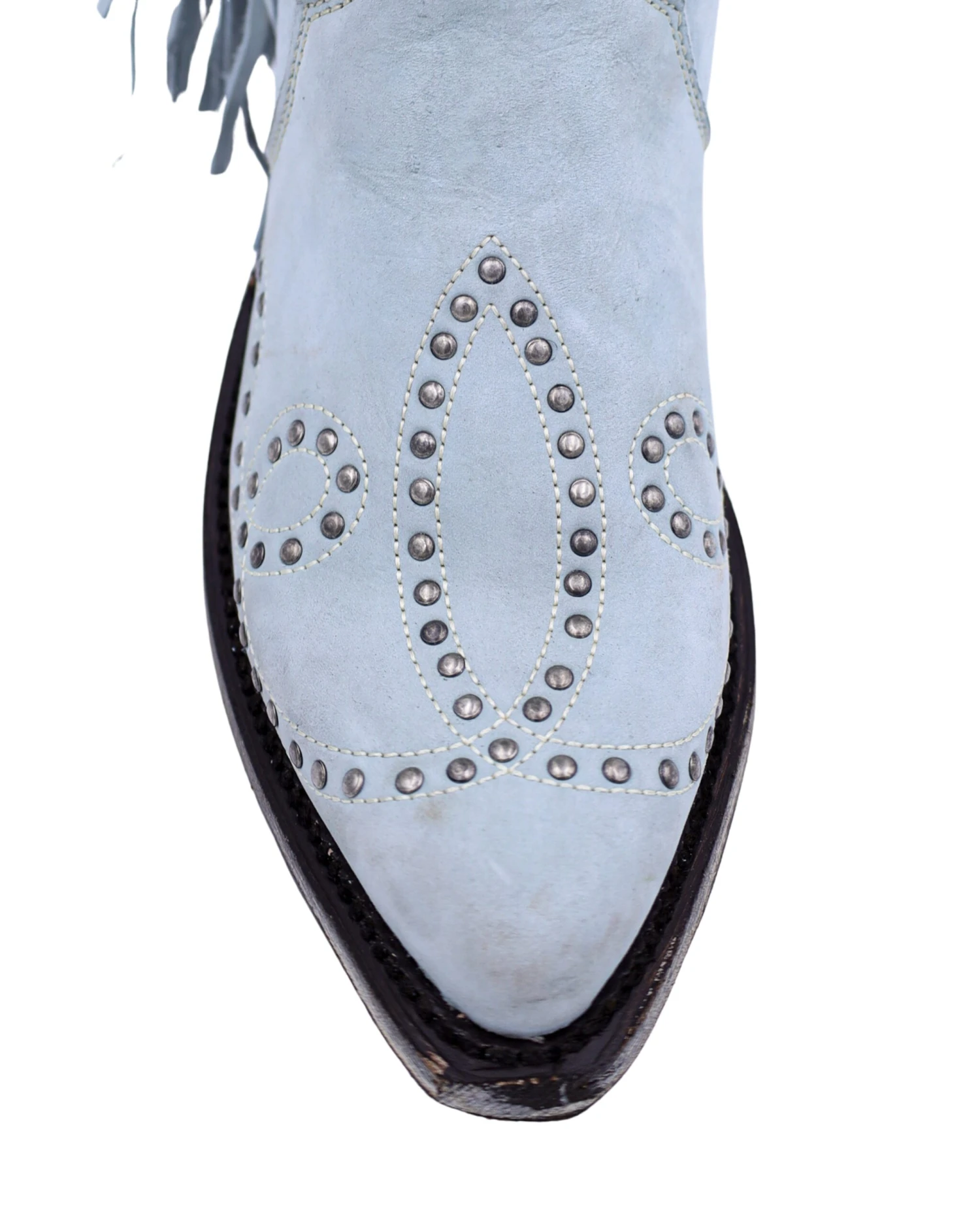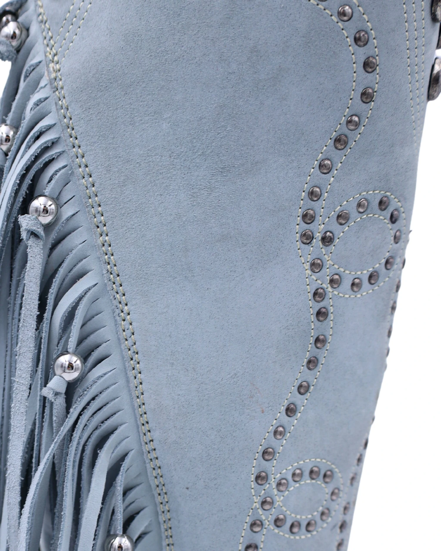 The neutral gray (small hints of light blue) leather on these Liberty Black Boots is luscious and lovely, all Fringe Benefits included! It’s all perfection – from the unique color – around to the studded stitch patterns throughout – and all the way down the cascading fringe – every inch of this sassy silhouette is bringing sexy back! Get flirty in these fun loving cowboy boots!
