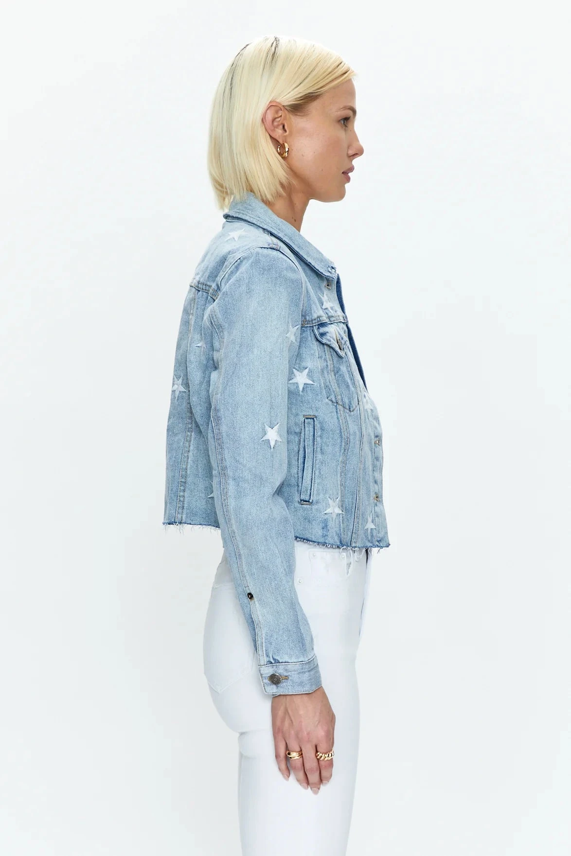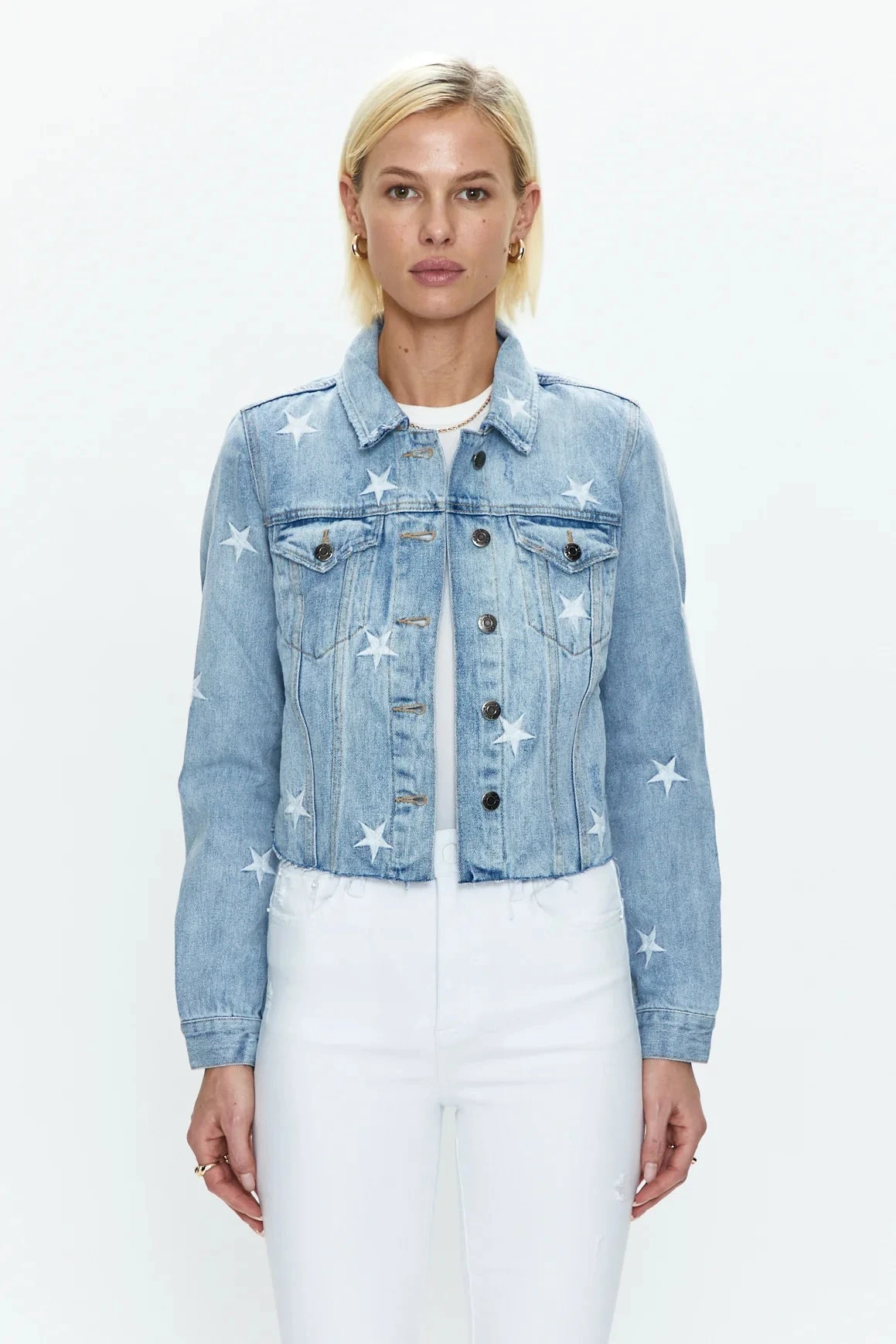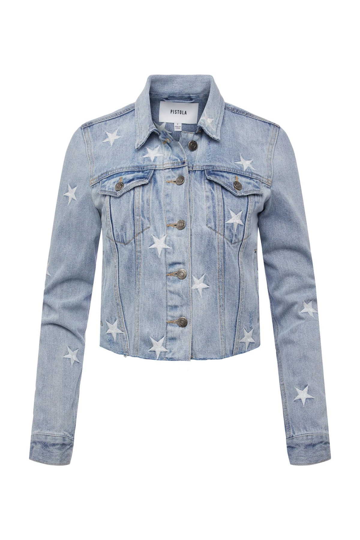 The Brando is a classic fitted denim jacket. This style in the Zodiac wash features all over star embroidery.Â
