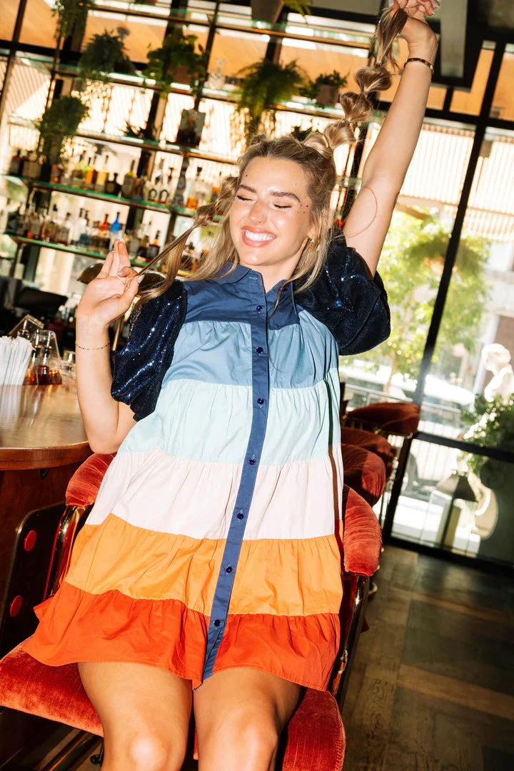 Add some spice to your closet with this colored sequin poof sleeve dress. It is a great piece for the summer and winter and is available in sizes x-small and small. Queen Of Sparkles!