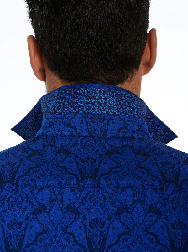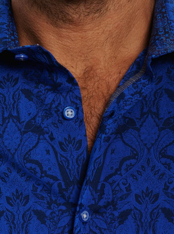 You loved The Andretti jacquard – an RG best seller and Collector favorite. Now discover our newest essential jacquard, The Highland. A damask motif is celebrated on this stretch cotton jacquard long sleeve button down shirt. Flip the collar for a contrast print.