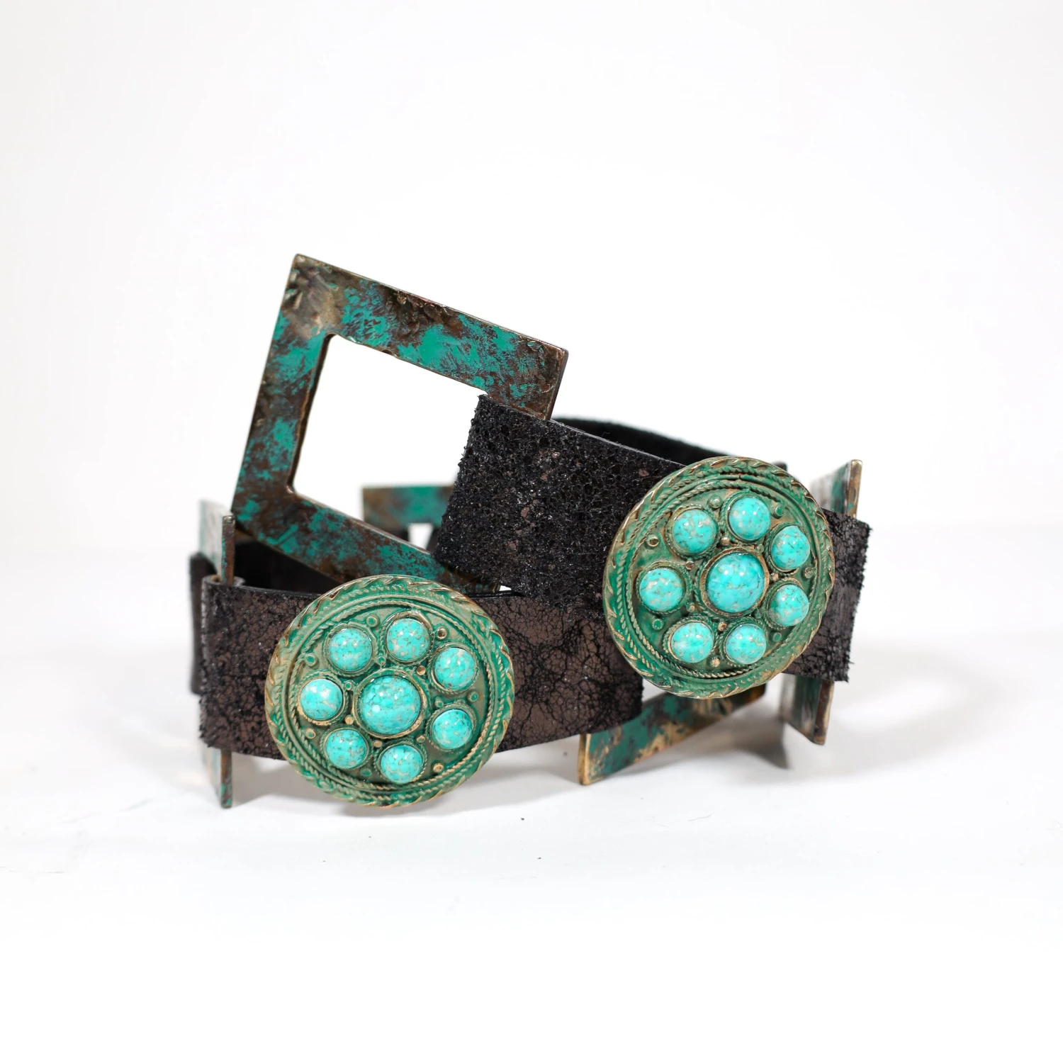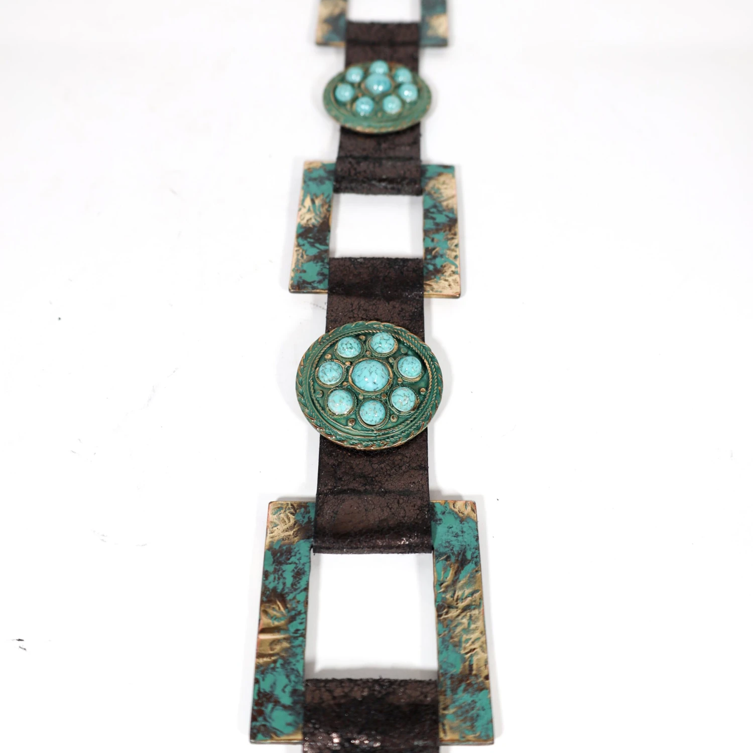 TURQUOISE CONCHOS WITH TURQUOISE METALLIC SQUARES