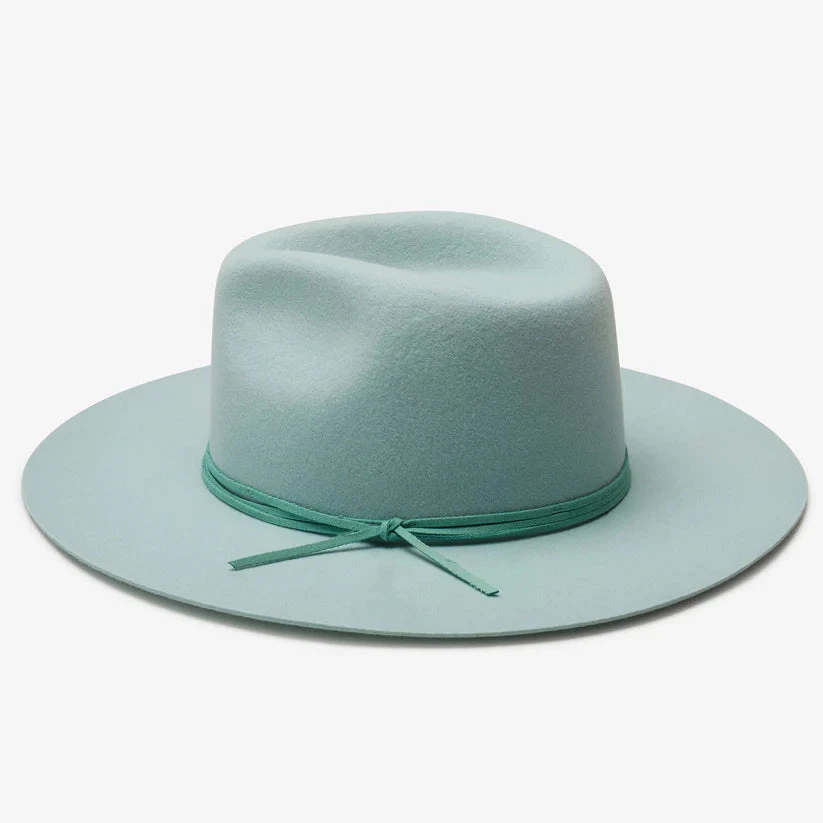 Shea is a simple, sexy, classic fedora. Made with 100% Australian wool felt, she has a stiff cut wide brim and tonal genuine suede rope trim.Â