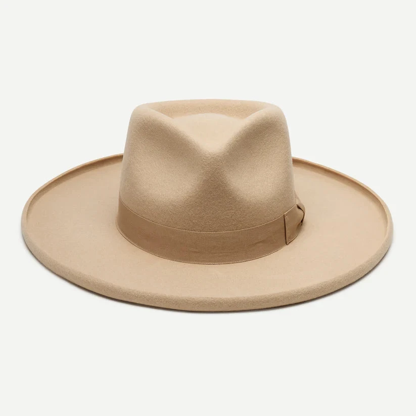 A staff favorite at WYETH. The Wright features a teardrop crown, stiff construction, and a pencil curl brim. She’s made from 100% Australian wool felt and trimmed with a gros grain ribbon band.